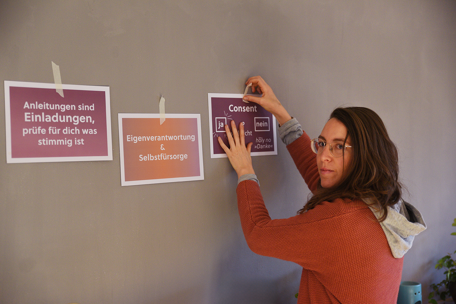 Dabei stehen Konsens (gegenseitige Übereinkunft), offene Kommunikation, Langsamkeit und Achtsamkeit im Fokus. Im eigenverantwortlichen Handeln entscheidet jede:r was sie/er tun mag. Nein / Stop und alle Grenzen sind dabei heilig und werden tief wertgeschätzt.